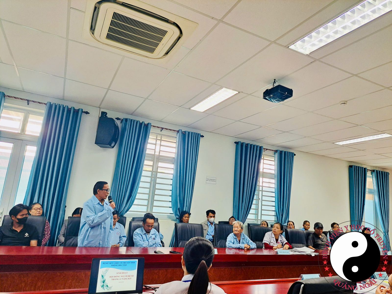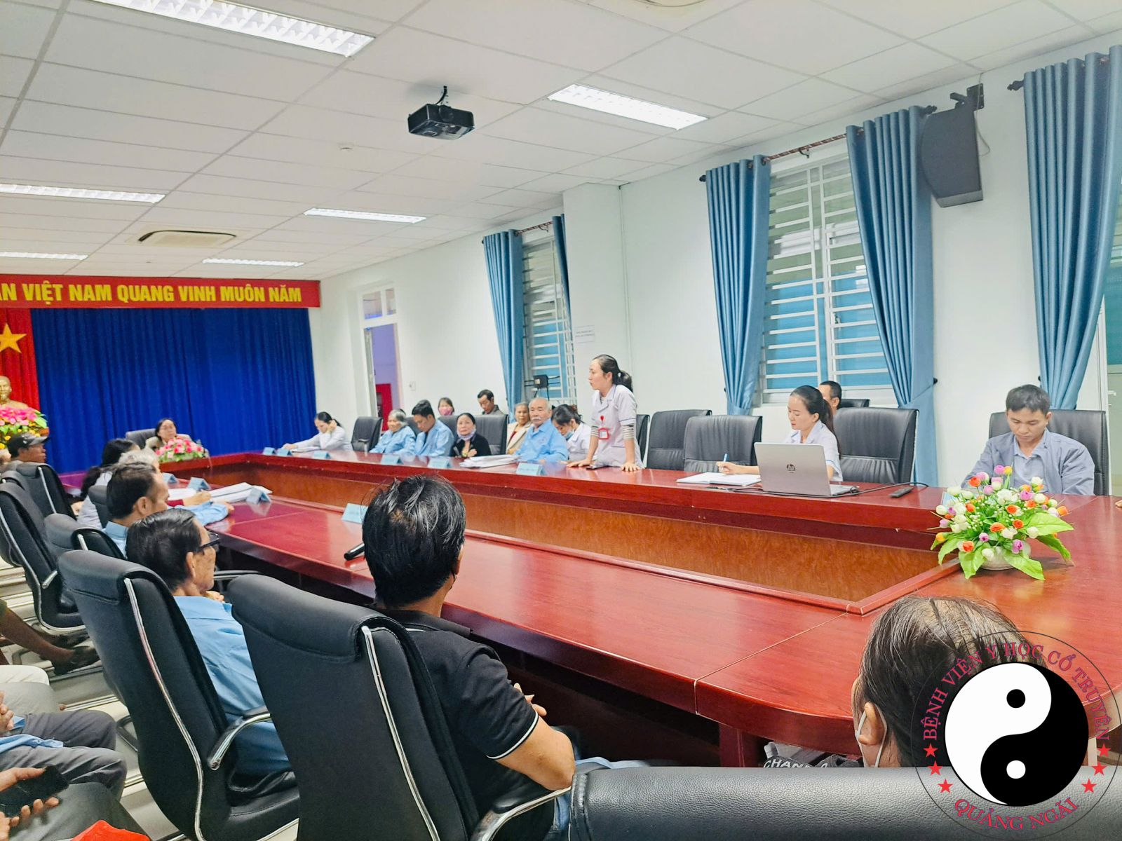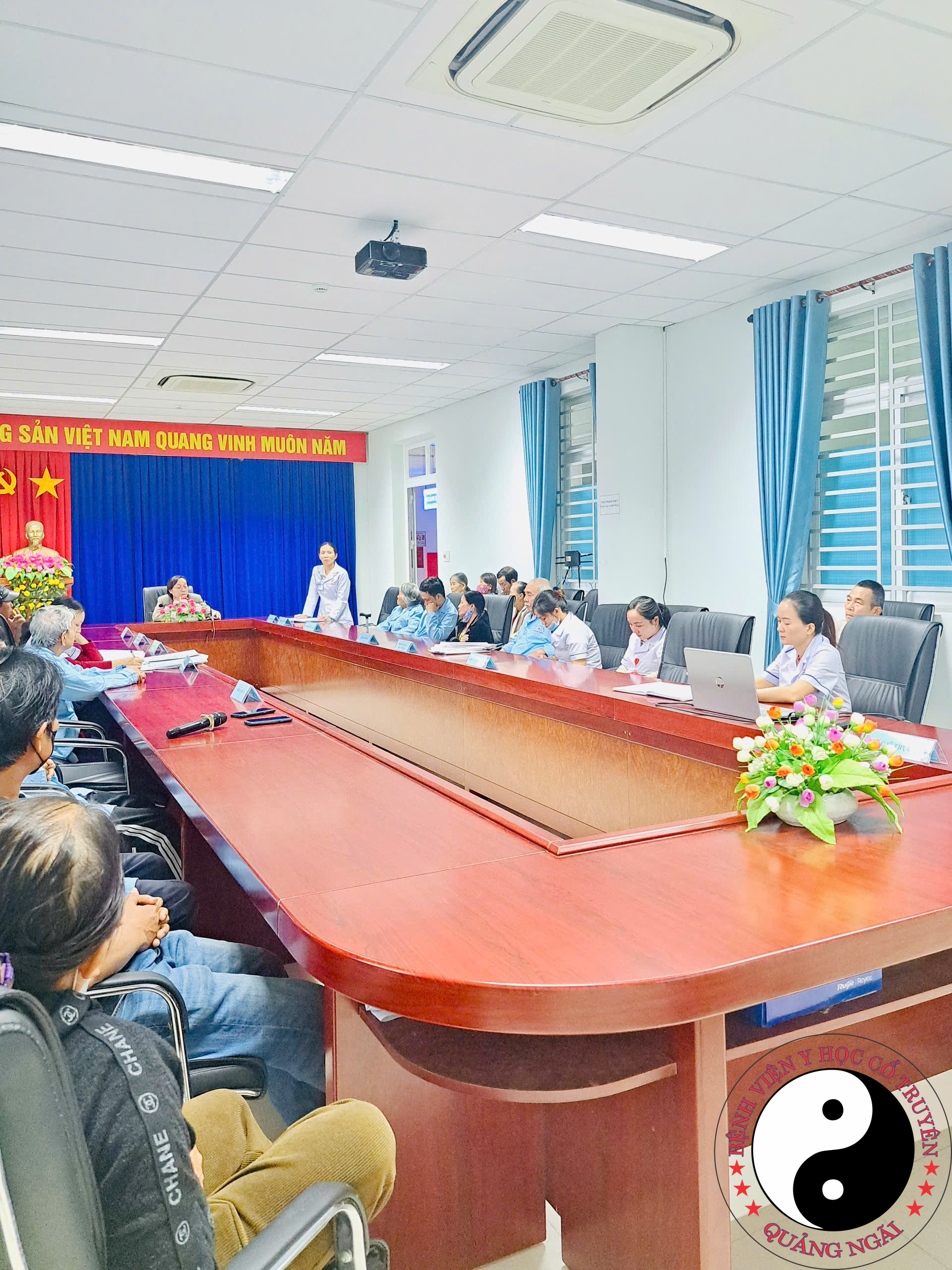 Trong tháng 12 năm 2025, Bệnh viện Y học cổ truyền tỉnh Quảng Ngãi tổ chức buổi họp Hội đồng người bệnh với sự tham dự của Ban Giám đốc bệnh viện, điều dưỡng trưởng các khoa nội trú và đại diện Phòng Điều dưỡng – Công tác xã hội, nhằm tạo điều kiện để bệnh viện được lắng nghe những ý kiến, chia sẻ và góp ý chân thành từ người bệnh và thân nhân trong quá trình điều trị. Tại buổi họp, đã có 6 ý kiến của người bệnh và người nhà người bệnh được nêu ra, tập trung vào công tác chăm sóc, điều trị và điều kiện sinh hoạt trong thời gian nằm viện. Các ý kiến đã được Thạc sĩ, Bác sĩ Trần Vương Uyên Phương – Phó Giám đốc bệnh viện trực tiếp lắng nghe, giải đáp thắc mắc và trao đổi cụ thể với người bệnh đang điều trị tại bệnh viện, qua đó giúp người bệnh yên tâm và hiểu rõ hơn về quá trình điều trị. Kết thúc phần trao đổi, Bác sĩ Chuyên khoa II Nguyễn Thành đã gửi lời cảm ơn chân thành đến người bệnh và thân nhân đã tin tưởng, lựa chọn Bệnh viện Y học cổ truyền tỉnh Quảng Ngãi là nơi điều trị. Kết hợp trong chương trình, bệnh viện cũng tổ chức truyền thông giáo dục sức khỏe về bệnh thoái hóa cột sống cổ – một bệnh lý thường gặp hiện nay, đặc biệt ở người trung niên và cao tuổi, với các nội dung hướng dẫn nhận biết triệu chứng, phương pháp điều trị bằng y học cổ truyền như châm cứu, xoa bóp bấm huyệt, kéo giãn cột sống và tư vấn cách phòng ngừa, chăm sóc phù hợp nhằm nâng cao hiệu quả điều trị và chất lượng cuộc sống cho người bệnh.